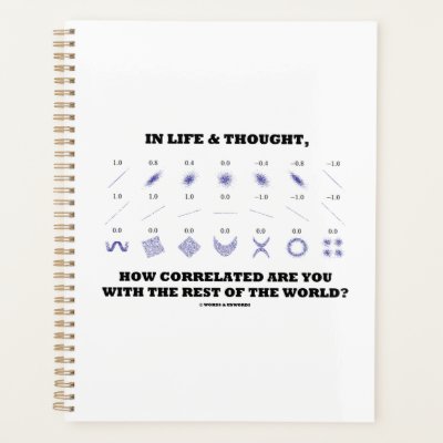 Showcase your wry statistical side with this planner featuring various correlations and their corresponding correlation coefficients along with the following existential stats query: "In Life & Thought How Correlated Are You With The Rest Of The World?" Do a double-take on the subject of correlation with a dose of statistical attitude today with this planner! myStatistician