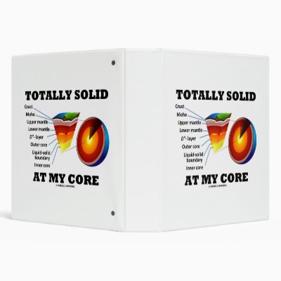 Are you a totally solid person at the core level? Showcase your wry earth science attitude with this binder featuring the different layers of the Earth with Earth of course having a solid core. Comes with the double-entendre scientific saying "Totally Solid At My Core". Make others do a double-take with a dose of tongue-in-cheek educational geek humor today with this binder! myEarthScience