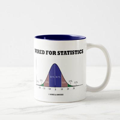Statisticians psychologists mathematicians economists and anyone who works with statistics on a daily basis will enjoy this memorable stats humor saying mug featuring the bell curve along with the caption "Wired For Statistics". Make others do a double-take with a dose of intelligent educational style with this statistical attitude mug! Featuring percentages under the curve along with the normal distribution curve (Gaussian distribution). myStatistician