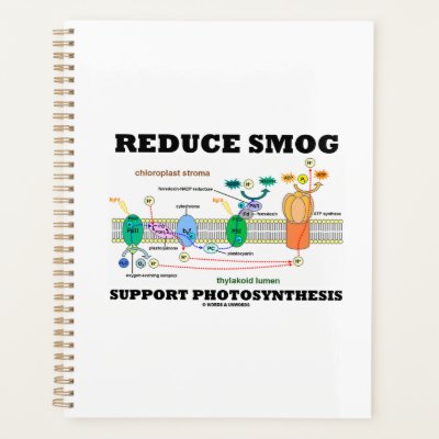 No need to be a plant biologist or environmentalist to enjoy wry scientific advice with this planner featuring the light-dependent reactions of photosynthesis. Includes the scientific truism saying for all who know what photosynthesis is all about: "Reduce Smog Support Photosynthesis". Memorable planner for Earth Day & beyond! myBiochemistry