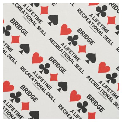 If you play the game of bridge or duplicate bridge you'll enjoy creating and making items with this fabric featuring the four card suits along with the bridge saying "Bridge A Lifetime Recreational Skill". No need to be a bridge teacher or avid bridge player to understand the benefits from learning this recreational skill that will keep your mind occupied for a lifetime! myBridgePlayer