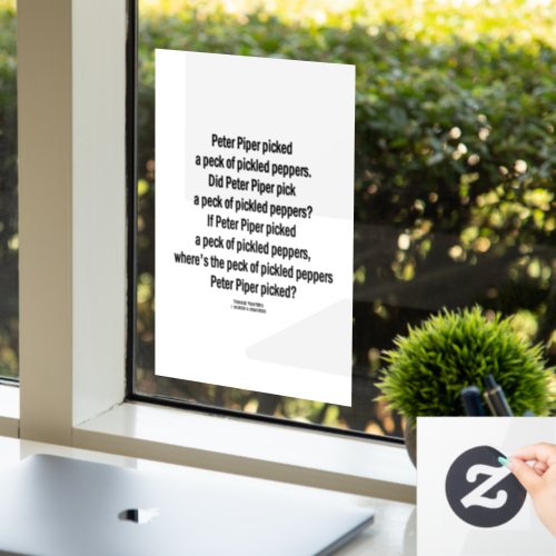 Peter Piper Picked Peck Of Pickled Peppers Window Cling #tongue #twister #rhyme #linguist #english #WindowCling