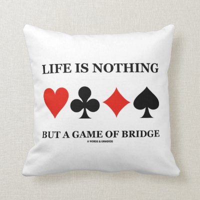 No matter how old you are or whether you are retired or not if you enjoy the game of bridge or duplicate bridge you'll enjoy this throw pillow featuring the four card suits along with the bridge truism saying "You Can Never Retire From The Game Of Bridge". Showcase your wry bridge attitude with a dose of intelligent fun today! myBridgePlayer