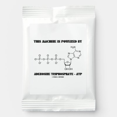 No need to be a chemist or biochemist to know that you are powered by adenosine triphosphate (ATP). Showcase your wry chemical molecule geek side with this drink mix featuring the saying "This Machine Is Powered By Adenosine Triphosphate". myBiochemistry