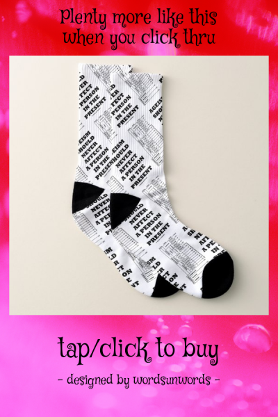 If you wonder about age and ageism the discrimination against age you'll enjoy wry geological time / geological age humor on this pair of socks featuring Earth's historical timeline in terms of epochs eons and periods along with the truism saying "Ageism Should Never Affect A Person In The Present". Double-entendre saying with a dose of earth science attitude for any fan of Earth's history -- at any age with this pair of socks! myEarthScience
