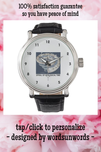 Showcase your passion for geological time the next time you tell time with this watch featuring "Spiral Of Geological Time". Includes Earth's history according to eons epochs and periods along a spiral of geological time. myEarthScience