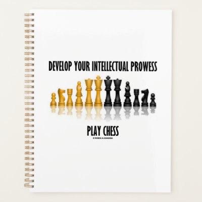 Showcase your intellectual prowess with a dose of chess humor with this planner featuring a reflective chess set along with the chess saying "Develop Your Intellectual Prowess Play Chess". Sound chess advice for avid chess player particularly any chess teacher or chess student! myChess