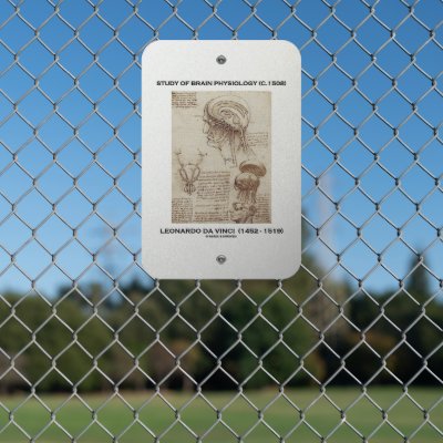 No need to be a neurosurgeon or neuroscientist to enjoy this metal parking sign featuring an illustration of the human brain by Renaissance genius scientist and artist Leonardo da Vinci. Title of da Vinci's infamous work is known as "Study Of Brain Physiology" and is circa 1508. myDaVinci