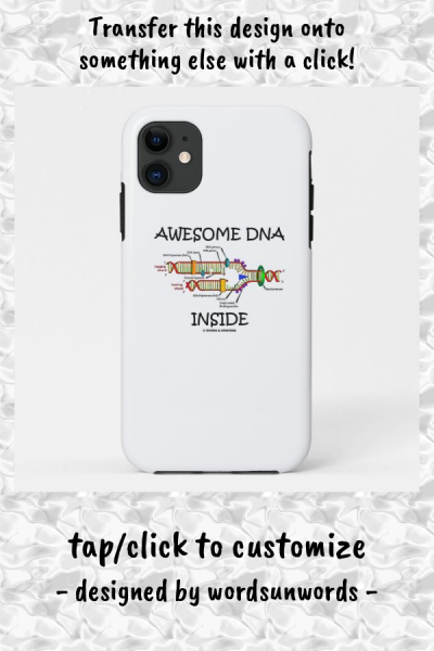 If you are not modest about your DNA you'll enjoy any of these tongue-in-cheek scientific gifts featuring DNA replication along with the immodest saying "Awesome DNA Inside". Complete with labels of all key parts of DNA replication. Timeless humor gifts for all those who believe that they have awesome DNA inside! myMolecularBiology