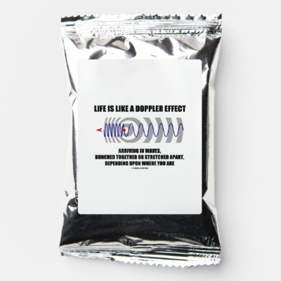 No need to be a physicist to understand the Doppler effect along with the following analogy which draws parallels between the Doppler effect and life: "Life Is Like A Doppler Effect Arriving In Waves Bunched Together Or Stretched Apart Depending Upon Where You Are". Make others do a double-take on life with a dose of scientific humor with this Doppler effect analogy drink mix! myPhysics