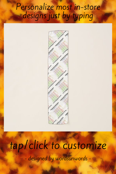 Make others do a double-take on the world of particle physics with this scarf featuring the Standard Model of Elementary Particles along with the following geek humor saying: "Particle Physics Is An Elementary Matter." Memorable scarf for any physicist or physics major who thinks in terms of leptons quarks electrons gluons neutrinos and bosons! myPhysics