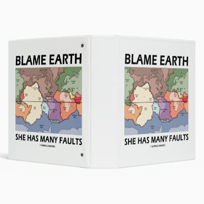No need to be an earth scientist to understand plate tectonics the scientific theory which describes the large scale motions of Earth's lithosphere. Showcase your knowledge of the plates of the world with this binder featuring a map of the Earth's tectonic plates along with the truism saying and query: "Millions Of People Live On An Edge Will Mother Nature's Friction Affect You?" Memorable binder for any earthquake watcher or seismologist! No need to have been in an earthquake or lived on a plate boundary to enjoy! myEarthScience