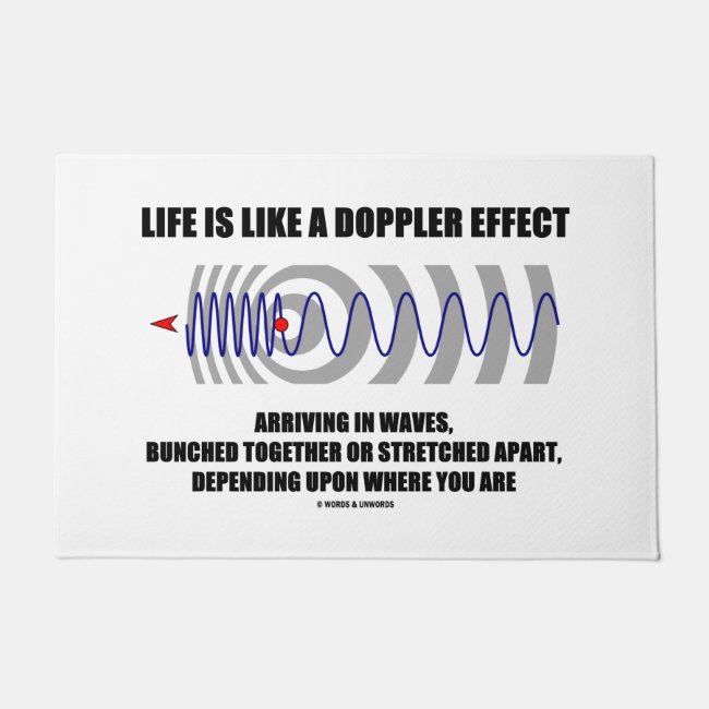 No need to be a physicist to understand the Doppler effect along with the following analogy which draws parallels between the Doppler effect and life: "Life Is Like A Doppler Effect Arriving In Waves Bunched Together Or Stretched Apart Depending Upon Where You Are". Make others do a double-take on life with a dose of scientific humor with this Doppler effect analogy doormat! myPhysics