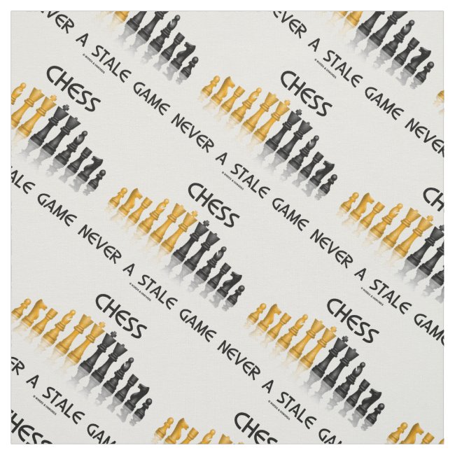 Chess players will enjoy creating and making items with this fabric featuring a reflective chess set along with the following observation: "Chess Never A Stale Game". Make others do a double-take at why chess the game never seems stale to you! Memorable chess humor fabric for anyone who views the game of chess with a fresh pair of eyes each time! myChess