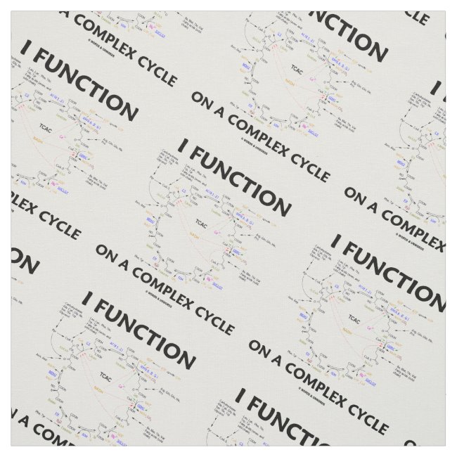 Do you function on a complex cycle? You'll enjoy this biochemistry humor fabric featuring the Krebs cycle (also known as the citric acid cycle or tricarboxylic acid cycle) with the saying "I Function On A Complex Cycle". Showcase the complexity of your operating innards today. Science attitude fabric for any maker who functions on a complex cycle -- no matter what schedule you are follow! myBiochemistry
