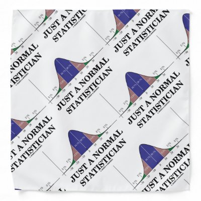 Are you just a normal statistician? Showcase your normal sense of humor with this wry statistical humor bandana featuring the bell curve (normal distribution curve Gaussian curve) along with the saying "Just A Normal Statistician". Make others do a double-take at how normal you are according to the world of statistics! Memorable bandana for anyone who plays with statistics and consider himself or herself to be a statistician! myStatistician