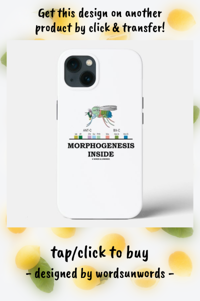 No need to be a molecular biology to enjoy wry scientific educational attitude with this iPhone 13 case featuring the homeobox genes of a fruit fly along with the saying "Morphogenesis Inside". For the record a homeobox is a DNA sequence found within genes that are involved in the regulation of patterns of development (morphogenesis) in organisms. Make others do a double-take with tongue-in-cheek biological humor with this iPhone 13 case! Memorable scientific saying iPhone 13 case for anyone still developing and changing -- whether one's ideas or oneself. myMolecularBiology