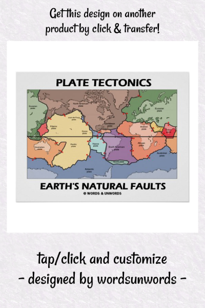 No need to a geographer or earth scientist to know about plate tectonics. Showcase your knowledge of the plates of the world with this poster featuring "Plate Tectonics - Earth's Natural Faults" today! myEarthScience
