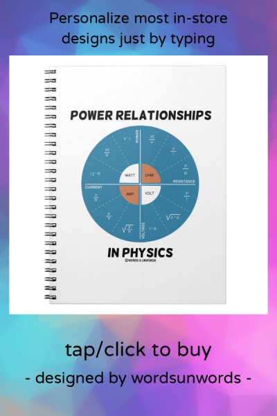 Showcase your knowledge of the power relationships in physics with this notebook featuring a wheel chart of the equations of power current voltage and resistance -- i.e. the "Power Relationships In Physics". No need to be a physics teacher or physicist to enjoy wry geek humor with this notebook! myPhysics
