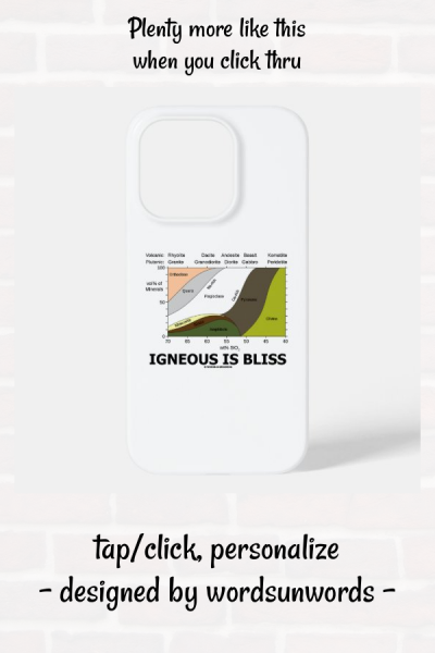 Geologists earth scientists and rockhounds will enjoy this iPhone 14 Pro case featuring various igneous rocks according to silica content along with the following geological truism / pun on the saying "Ignorance Is Bliss": "igneous Is Bliss". Make others do a double-take on what you find blissful with this scientific geek humor iPhone 14 case today! myEarthScience