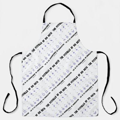 If you've heard about how big data from mega-corporations are going to dominate the way we live and work you'll enjoy wry statistical humor with this geek attitude all-over print apron featuring various correlations and their correlation coefficients along with the following truism saying: "The Pitfalls Of Big Data Lie In Its Overreliance On Correlation". Make others do a double-take on the need for corporate hubris amongst big data advocates with a dose of educational stats humor today! myStatistician