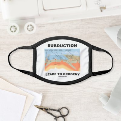 Geologists seismologists and earth scientists will appreciate this cotton/polyester face mask featuring three different plate boundaries along with the following geological / plate tectonic saying: "Subduction Leads To Orogeny". Make everyone do a double-take on the origin of mountain-building today! myEarthScience