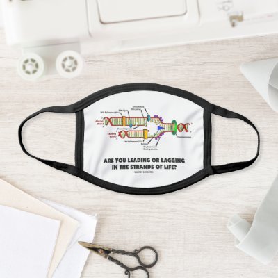 DNA humor is alive and well on this cotton/polyester face mask featuring DNA replication along with the following rhetorical question that will make everyone do a double-take on thinking about the leading strand and the lagging strand in life: "Are You Leading Or Lagging In The Strands Of Life?" Wry molecular biology attitude face mask for anyone who ponders about where he or she might be in the grand scheme of life! myMolecularBiology