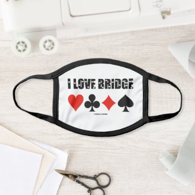 If you have ever had a bridge partner who bid wildly at the bridge table you will enjoy this bridge humor cotton/polyester face mask. Design features all four card suits (heart club diamond spade) along with the query that a declarer often says to dummy "Where's The Hand You Held In Bidding?" Make others do a double-take at the bridge table with a dose of tongue-in-cheek bridge attitude with this cotton/polyester face mask! myBridgePlayer