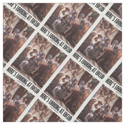 Showcase your wry mathematical and artistic side the next time you create with this fabric featuring a drawing of Euclid in Ancient Greek times by Raphael in his infamous fresco work "The School Of Athens" along with the saying "Here's Looking At Euclid". Fabric for any fan of Euclid and his contributions to geometry throughout the ages! myMathematician