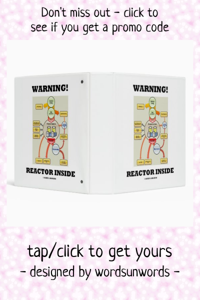 Is there a nuclear reactor inside of you? No need to be a nuclear physicist -- although it helps -- to enjoy this wry technology diagram binder featuring the inputs and outputs of a nuclear power reactor along with the saying "Warning! Reactor Inside". Sound advice binder for anyone who just keeps humming along! Memorable tongue-in-cheek binder for anyone who works in nuclear power industry! myWarning