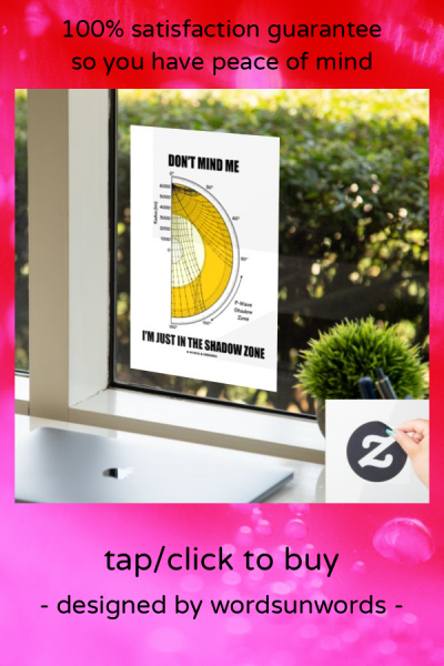 Showcase your wry seismological side with this window cling featuring p-waves and s-waves traveling through Earth after an earthquake along with the following saying: "Don't Mind Me I'm Just In The Shadow Zone". myEarthScience