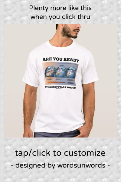 Have you experienced very bone chilling sub zero weather recently? Let your wry meteorological side shine with this tee featuring the development of the polar vortex along with the following scientific query: "Are You Ready For The Next Polar Vortex?" Do a double-take on the effects of global warming with a dose of scientific attitude today with this tee! myEarthScience