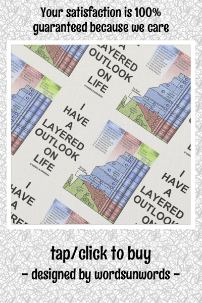 Fans of geology and the Grand Canyon will enjoy making stuff from this fabric featuring the different layers of Grand Canyon rock along with the saying "I Have A Layered Outlook On Life". Make others do a double-take with this geological geek humor fabric today! myEarthScience