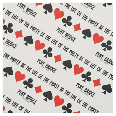 Bridge players will enjoy making things with this fabric featuring the four card suits along with the following bridge saying: "Be The Life Of The Party Play Bridge". Memorable fabric for any avid bridge player who loves to create! myBridgePlayer
