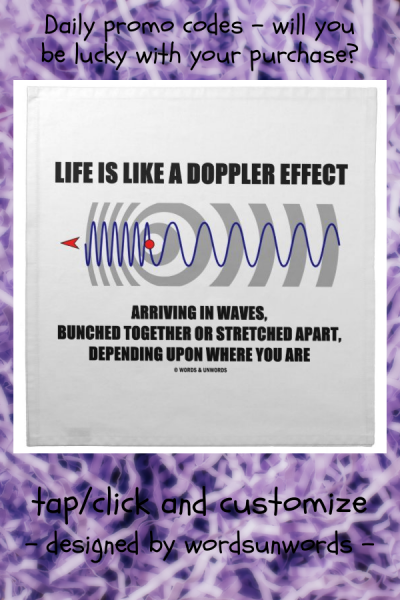 No need to be a physicist to understand the Doppler effect along with the following analogy which draws parallels between the Doppler effect and life: "Life Is Like A Doppler Effect Arriving In Waves Bunched Together Or Stretched Apart Depending Upon Where You Are". Make others do a double-take on life with a dose of scientific humor with any of these Doppler effect analogy gifts! myPhysics