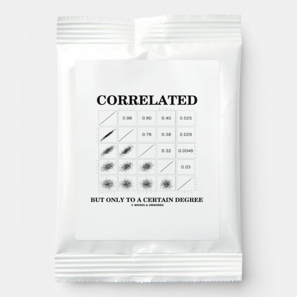 Make others do a double-take with a dose of wry stats attitude with this drink mix featuring various correlations and their respective correlation coefficients along with the saying "Correlated But Only To A Certain Degree". myStatistician