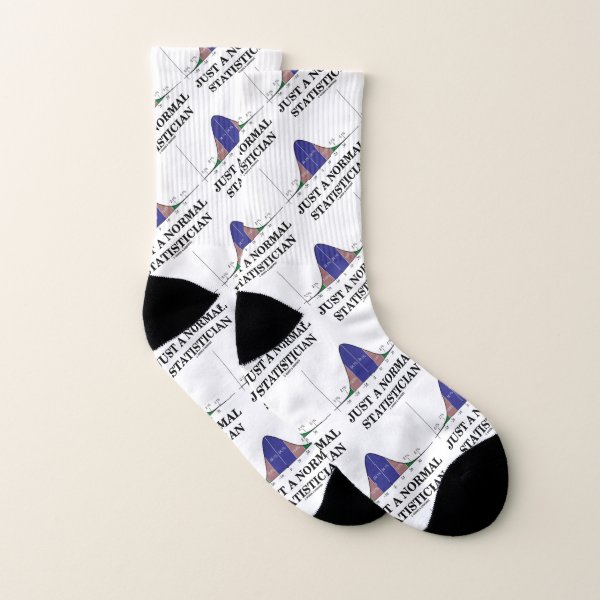 Are you just a normal statistician? Showcase your normal sense of humor with this wry statistical humor pair of socks featuring the bell curve (normal distribution curve, Gaussian curve) along with the saying "Just A Normal Statistician". Make others do a double-take at how normal you are according to the world of statistics! Memorable pair of socks for anyone who plays with statistics and consider himself or herself to be a statistician! myStatistician
