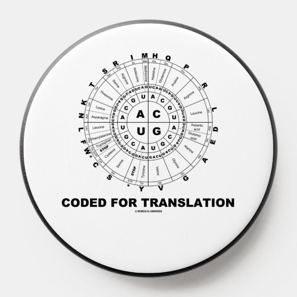 No need to be a biologist to know the various amino acids according to RNA codon. Showcase your educational, scientific side with this PopSocket phone grip featuring an RNA codon wheel along with the saying "Coded For Translation". Make others do a double-take on what everyone is coded for today with this phone grip! myMolecularBiology