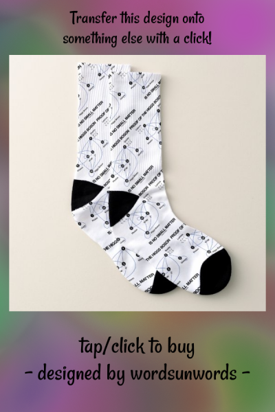 Showcase your wry quantum mechanics attitude with this pair of socks featuring the Standard Model of the Higgs field along with the following truism saying: "Proof Of The Higgs Boson Is No Small Matter". myPhysics