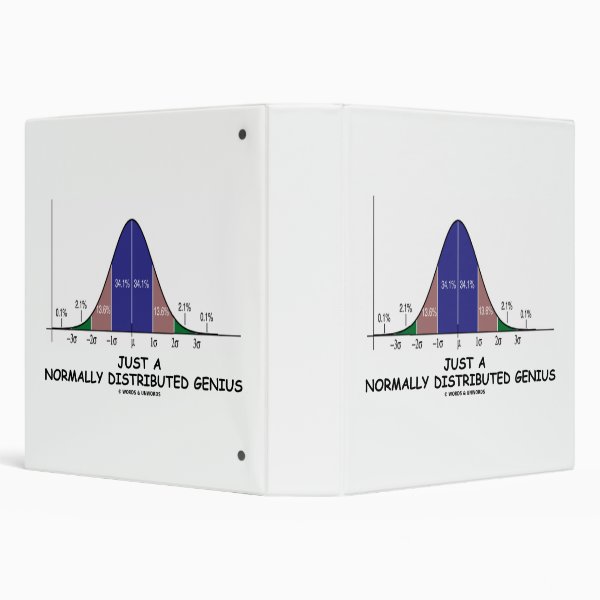 Are you a genius? Do you know about the normal distribution curve? Showcase your wry statistical attitude with this binder featuring the bell curve (also known as the Gaussian curve or normal distribution curve) along with the tongue-in-cheek saying "Just A Normally Distributed Genius". Make others do a double-take at what you mean with a dose of psychological, educational statistical style with this binder! myStatistician